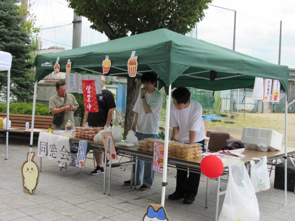 2025年8月30日同窓会として参加今年はOB企業株式会社東日本フーズ様より唐揚げとフライドポテトを400食準備頂き3時間で完売いたしました。同窓会として母校との関わりを継続的に行っております。今年は新卒の卒業生も参加してくれました。